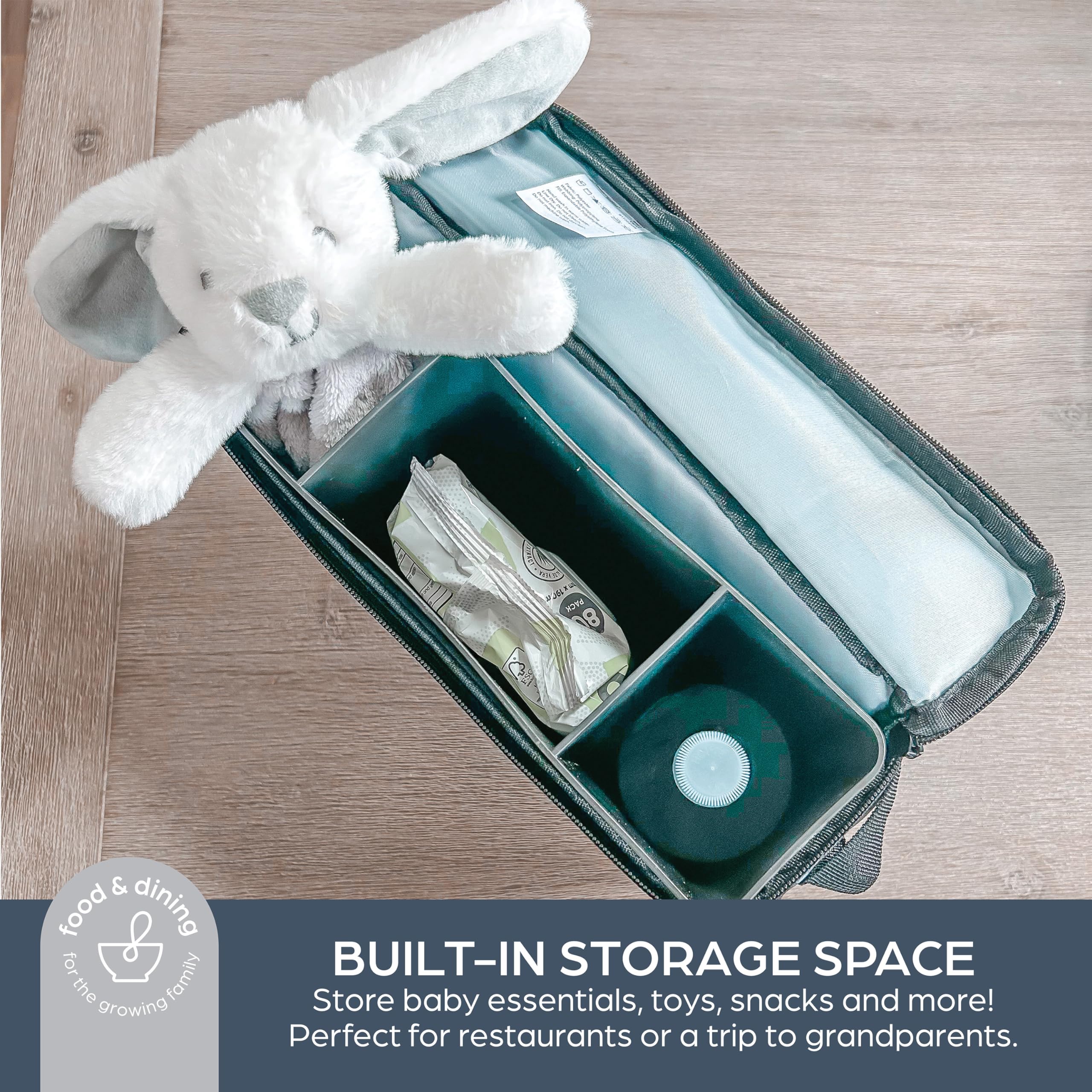 - 𝐂𝐨𝐧𝐯𝐞𝐧𝐢𝐞𝐧𝐜𝐞 𝐅𝐨𝐫 𝐏𝐚𝐫𝐞𝐧𝐭𝐬: This isn't just a booster seat for the dining table. Featuring a carry strap, it quickly and easily can be thrown over your shoulder for on the go adventures & the built-in storage gives you plenty of space to store the necessesities. Dine with confidence knowing you have a dependable high chair solution no matter where you are.